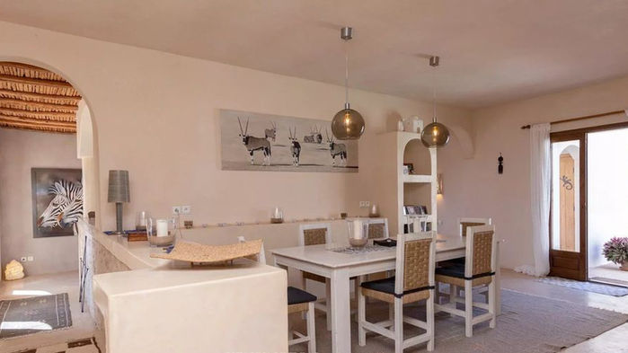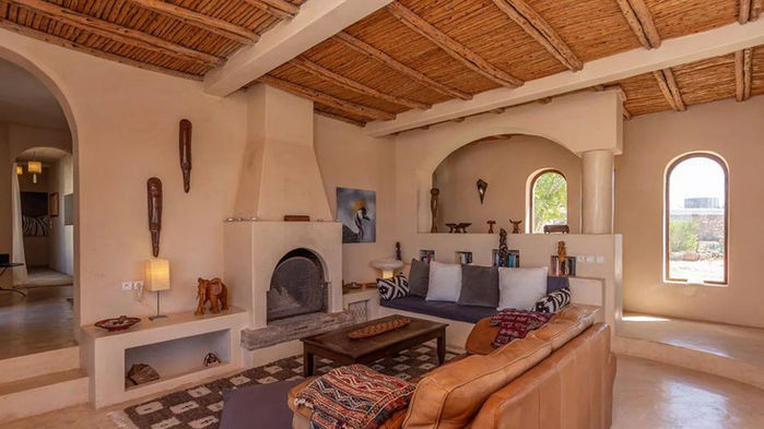 La Villa Vela conjugue subtilement le charme des éléments traditionnels marocains et le confort contemporain. Ses espaces généreusement ouverts, baignés de lumière naturelle, invitent à la détente et au bien-être. Les teintes chaudes et naturelles de la décoration créent une atmosphère apaisante, en parfaite osmose avec son environnement.