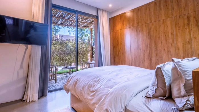 Dès votre entrée, cette villa vous séduit par son atmosphère chaleureuse et élégante. Elle propose quatre chambres, avec la possibilité d’ajouter deux chambres supplémentaires à l’étage pour encore plus de confort. L’espace est optimisé, vous offrant un cadre de vie idéal pour les familles ou les personnes recherchant une résidence de prestige à Marrakech.