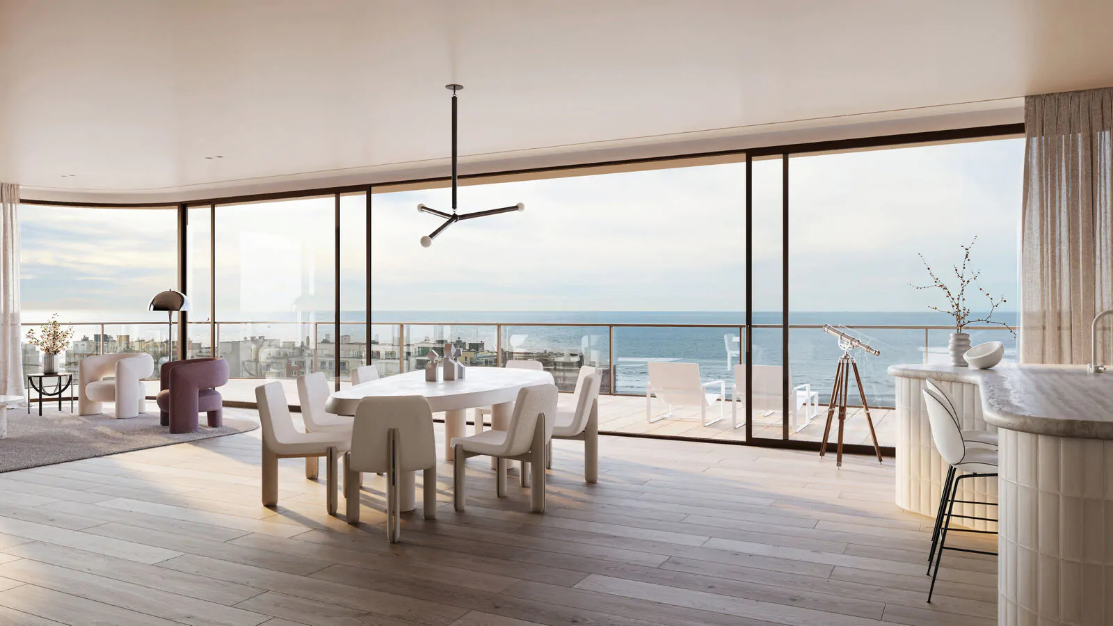 Situé au 6ᵉ étage, ce superbe appartement offre une vue mer spectaculaire, véritable tableau vivant qui accompagne chaque instant de la journée. La grande terrasse prolonge naturellement les espaces de vie, invitant à des moments de détente face à l’horizon.
