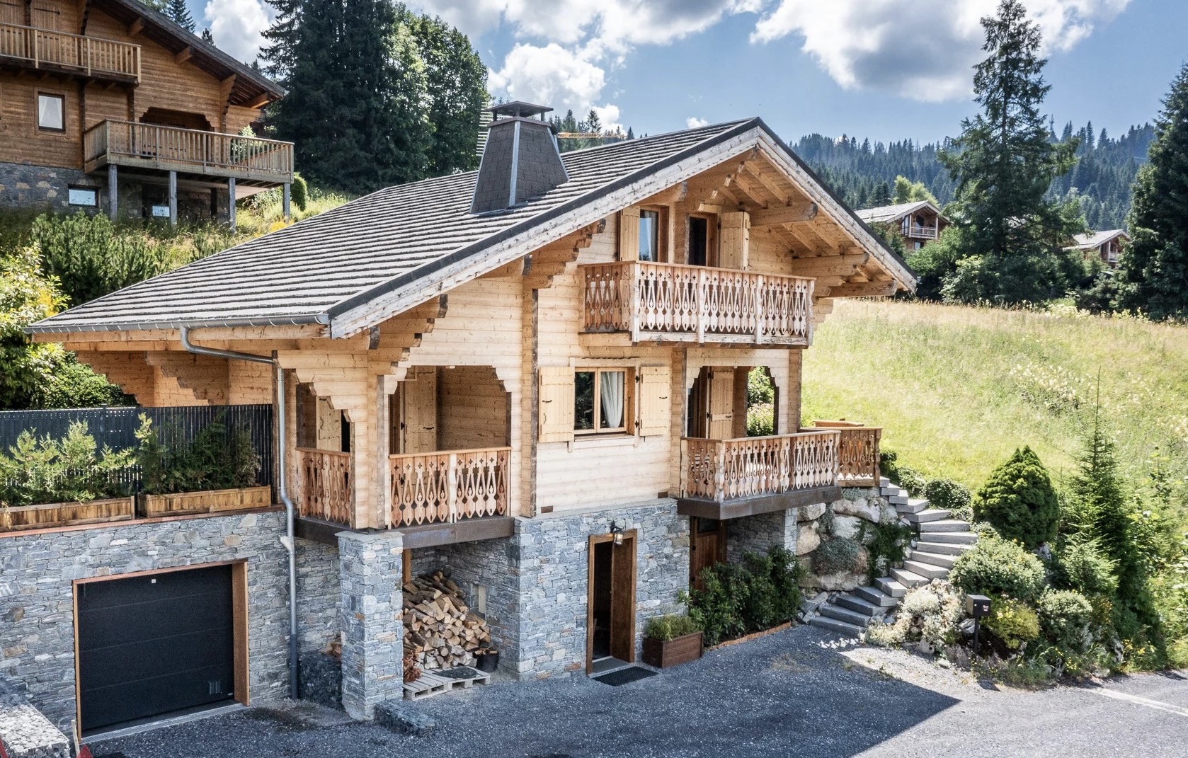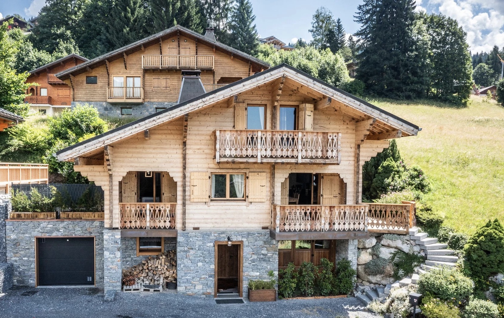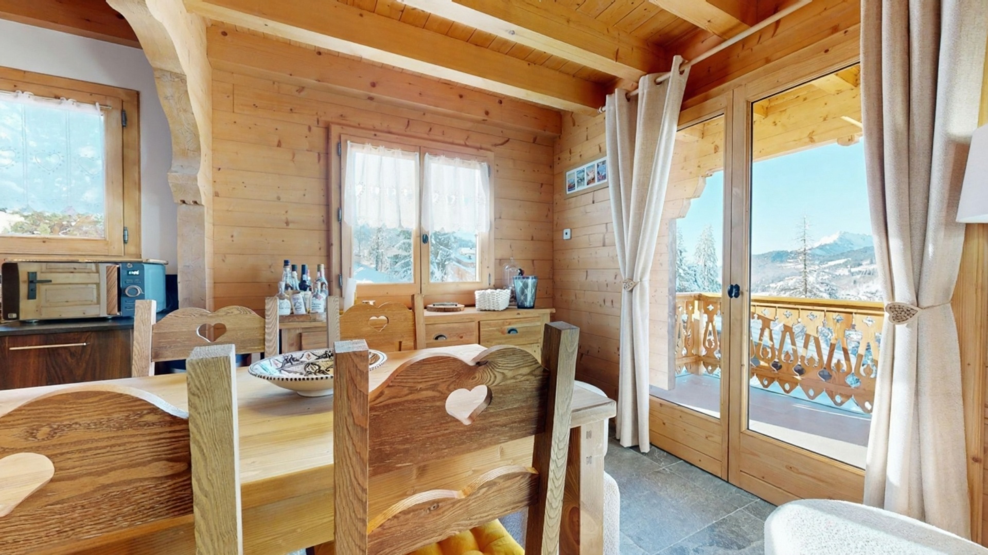 Dit chalet met vier slaapkamers ligt op de zonnige hoogten van de meest gewilde wijk van Les Gets en combineert authentieke alpencharme met modern comfort. Het is onlangs gerenoveerd en beschikt over een lichte open woonruimte met open haard, balkons op het zuidwesten en een adembenemend uitzicht op de vallei. Met een eigen tuin, garage en gemakkelijke toegang tot de skipistes en het dorpscentrum biedt het de perfecte mix van rust en gemak.