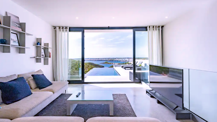 Gelegen in een van de meest gewilde gebieden van Menorca, met een fantastisch uitzicht over de historische haven van Mahon, maakt het art deco-ontwerp in combinatie met het spectaculaire uitzicht het een werkelijk uniek pand