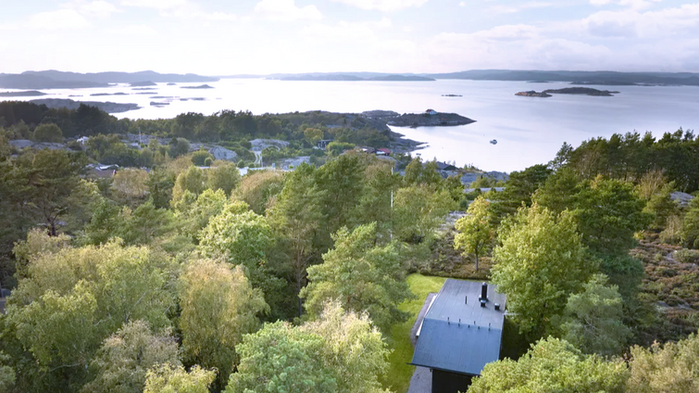 Door de verhoogde ligging biedt het huis een prachtig uitzicht over Stigfjorden.