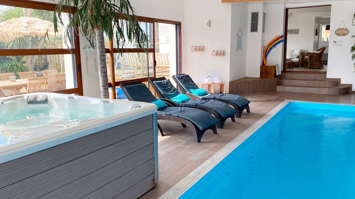 The standout feature of this property? A heated indoor pool and jacuzzi, opening onto a large south-facing terrace—a perfect relaxation spot, no matter the season!