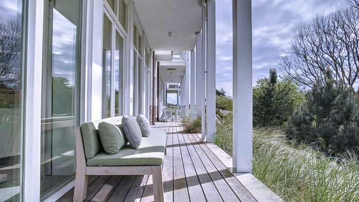 In the Badhuis residence is this magnificent ground-floor apartment with private garden in the dunes and three beautiful terraces.