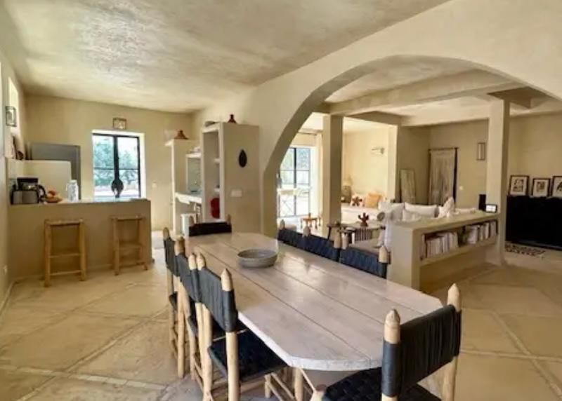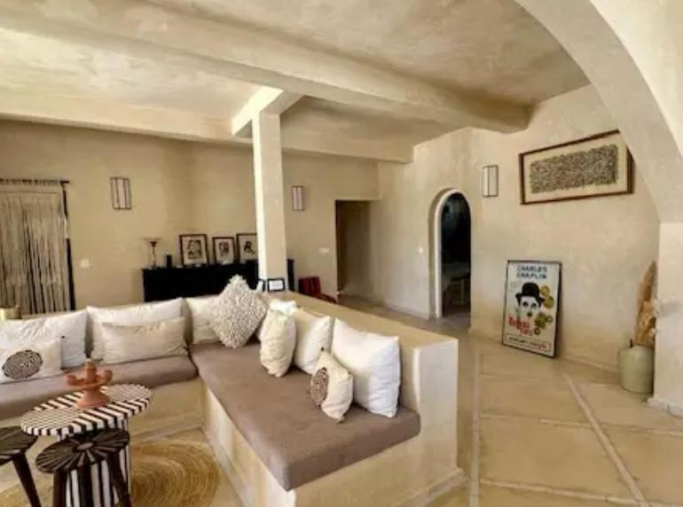 Designed with elegance and authenticity, the villa harmoniously blends traditional Moroccan architecture with modern sophistication. Arched doorways, tadelakt walls, and handcrafted details evoke the spirit of the country’s noble residences, while wide open interiors and generous volumes create a serene, contemporary atmosphere.