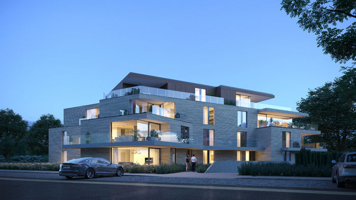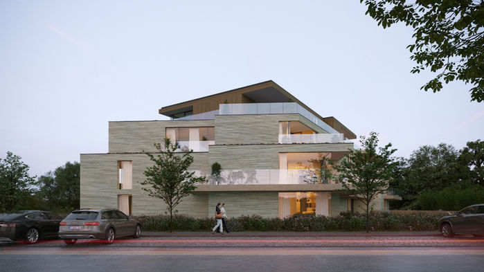 This sleek and modern building stands out with its timeless architectural design. The durable brick façade is seamlessly combined with architectural concrete terraces, featuring elegant glass balustrades with subtle supports. The result? Abundant natural light and a sophisticated aesthetic that never goes out of style.