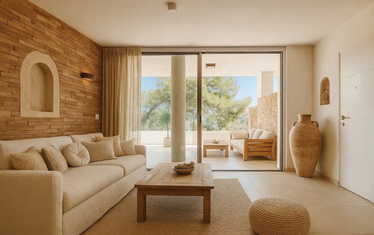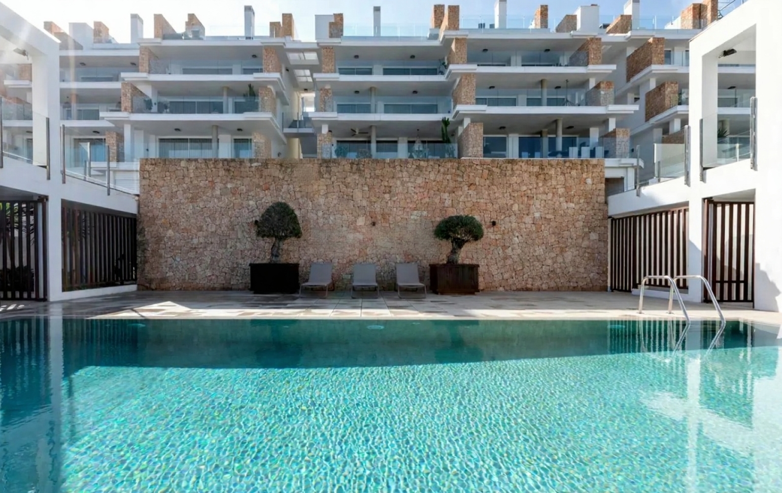 This stylish second-floor apartment in the Vadella 64 residence offers a peaceful coastal lifestyle just minutes from Ibiza’s most beautiful beaches. With 57 m² of interior space and a 22 m² terrace, it features two double bedrooms, a third with bunk beds, and two modern bathrooms. The private terrace enjoys partial sea views — perfect for relaxing or entertaining.